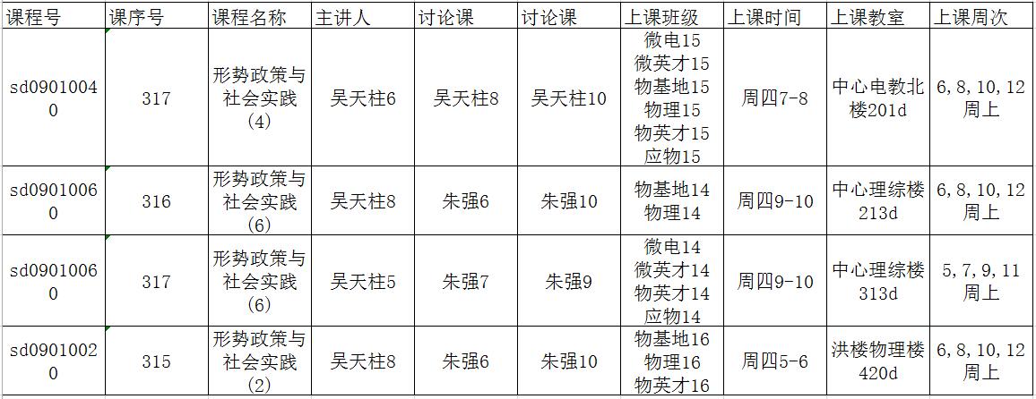 说明:“朱强10”表示 第十周由朱强老师上课。讨论课进行展示。