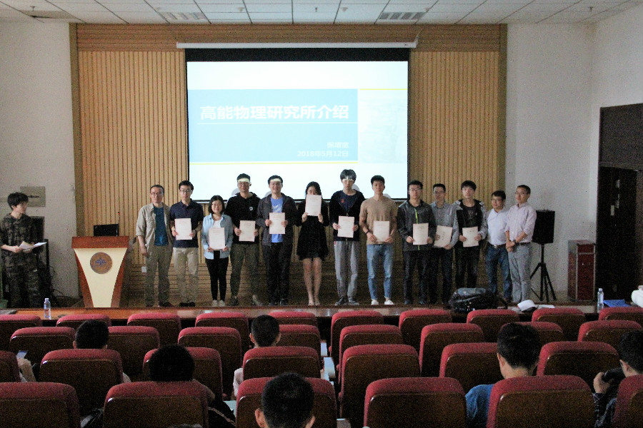 首先进行中科院高能所2018年英才奖学金颁奖,胜游体育(SYsports)官方网站入口英才班学生代表对中科院高能所的到来表示了感谢,宣读获奖学生名单,章志明、张源、何苗为10名获奖的同学颁奖并合影留念。章志明介绍了高能所的发展历史、取得的辉煌成就,以及高能所在目前的优势和未来的发展方向,其中着重介绍了一些高能所先进的实验仪器,让同学们大开眼界。