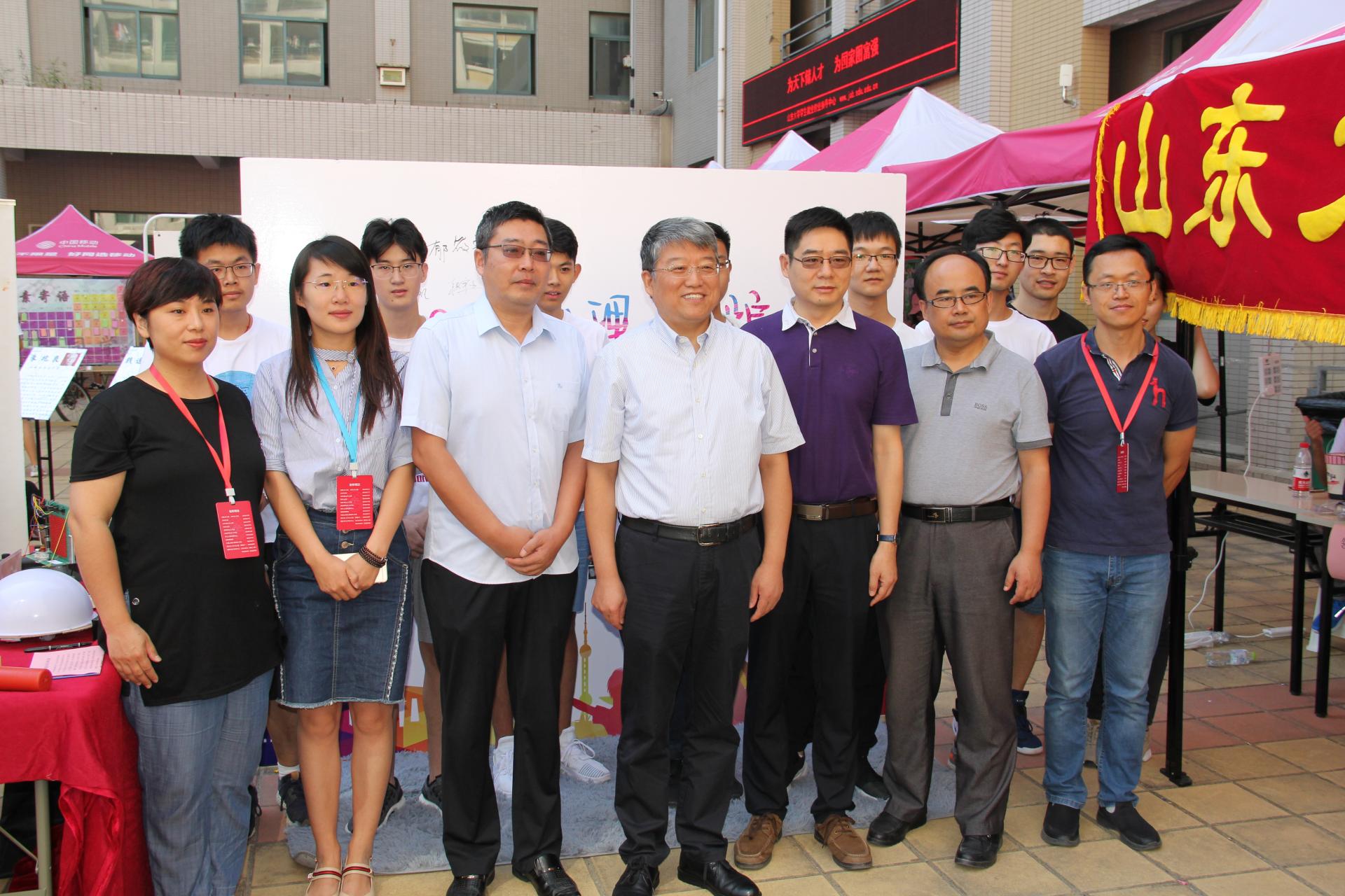 8日七时许,场地搭建完毕,迎新工作正式开始。学生会全体成员及招募的四十余名志愿者承担了现场的主要任务,工作流程清晰明了,快捷便利。经由现场宣传品的展示,新生及家长对于学院情况有了大致的了解。现场师生也热情为新同学答疑解惑,提供意见。手续办理完成后,报到新生与家长合影留念。报到新生踌躇满志,准备迎接即将到来的大学生活;而家长的眼神中也时刻流露出对新生的慈爱与不舍。除此之外,许多现大四年级(2015级)的同学也积极前来协助,将自己的祝福给予“年轻一代”。迎新工作开展期间,山东大学党委书记郭新立前来视察,并与胜游体育(SYsports)官方网站入口负责老师合影留念。