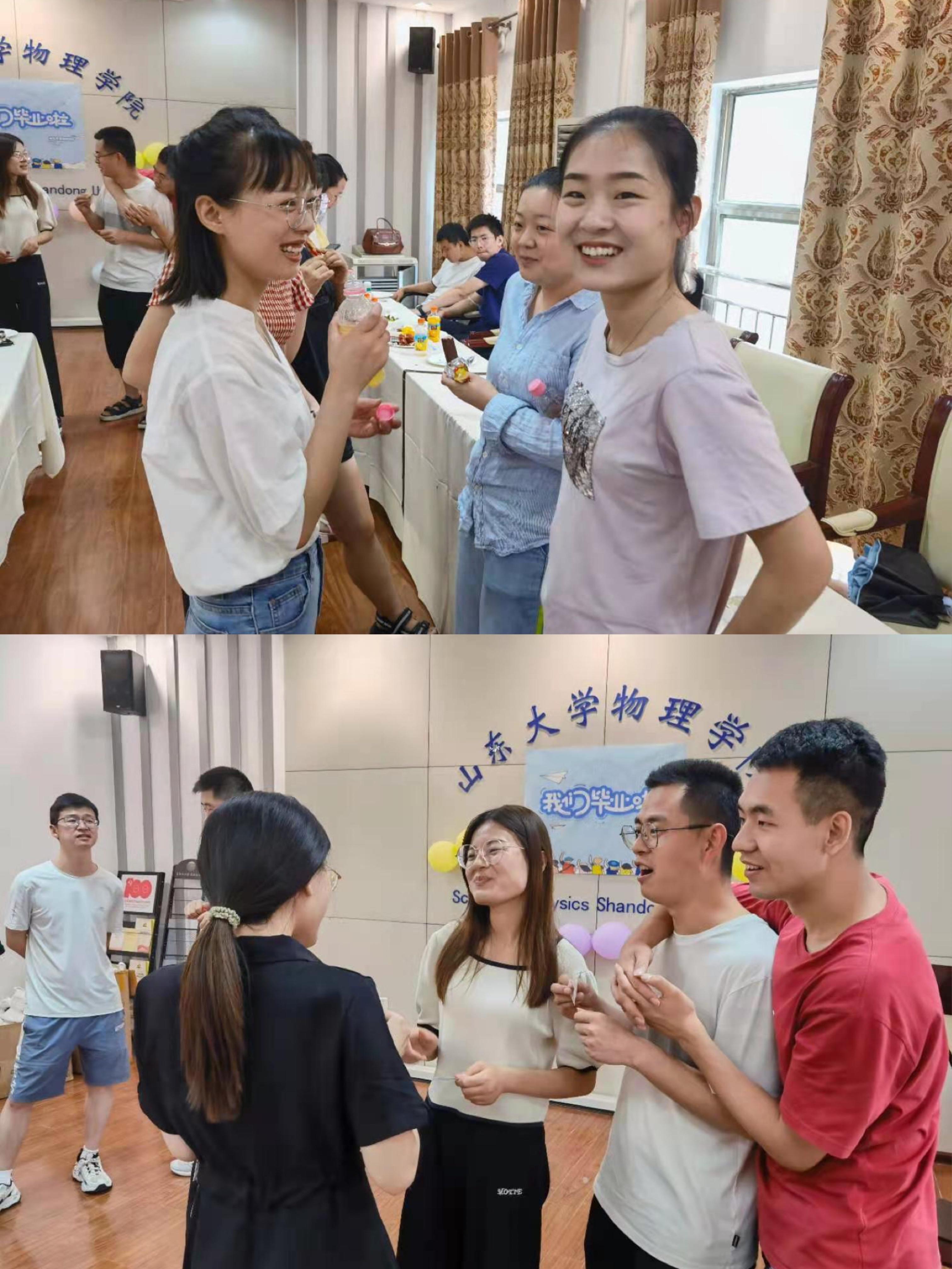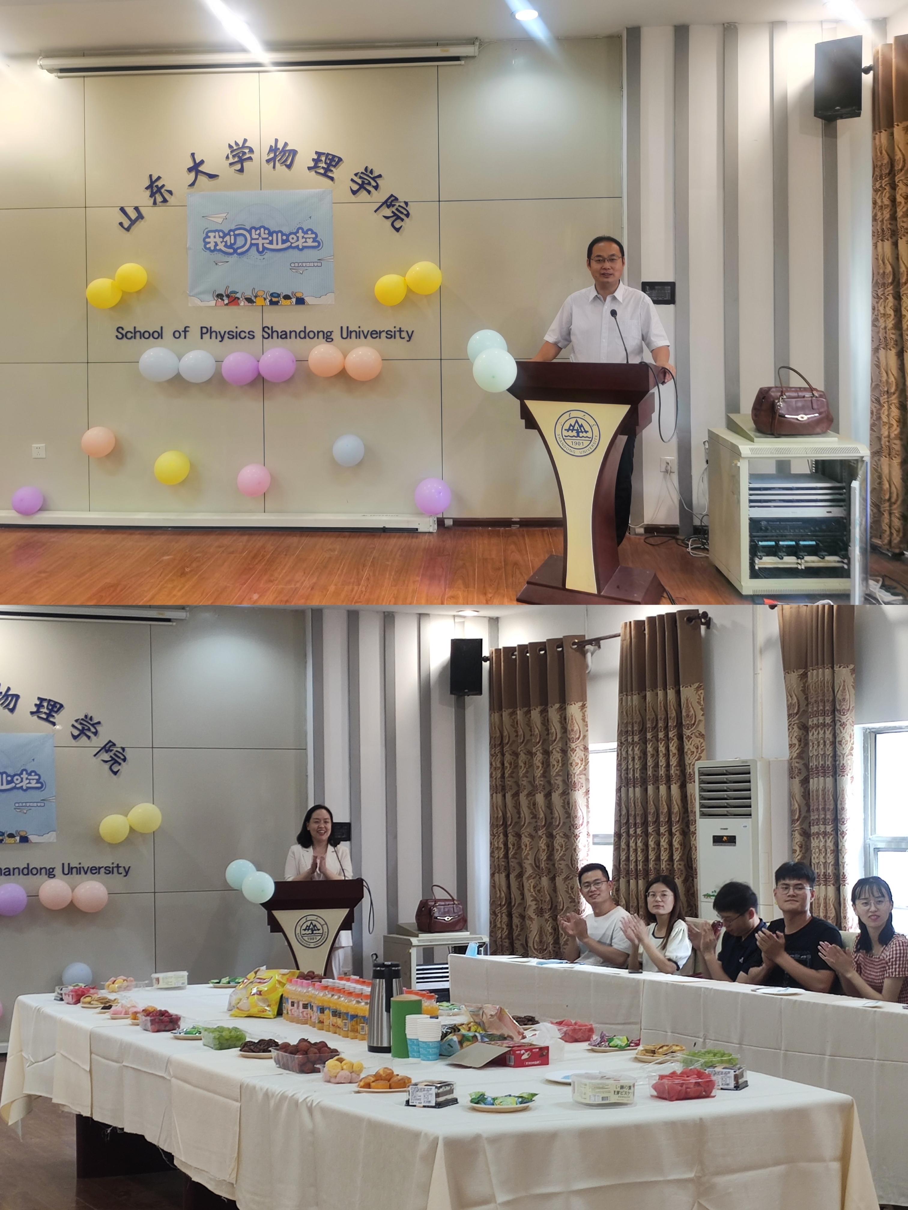 活动伊始,陈峰代表学院向毕业生致辞。他首先向毕业生表示祝贺,并向师生讲述了自己与离子束楼的故事,希望同学们珍惜山大求学历程与宝贵师生情谊。接着,他谈及对物理学科的理解与认识,期待同学们关注母校发展,为胜游体育(SYsports)官方网站入口学科建设增砖添瓦。最后,陈峰寄语全体毕业生,希望大家在今后的科研与工作中能够坚守原则,葆有创新精神。随后,到场师生在轻松愉快的氛围中进行自由交流。司宗国、赵明文、郝晓涛耐心倾听毕业生提出的问题,并结合自身经验提供有益借鉴,使各位同学对科研工作有了更加深入的理解,对职业生涯有了更为清晰的认识。张倩、辛莹、张海龙为毕业生送上真挚的祝福,欢迎大家常回母校看看。同学们也大胆畅聊研究生生活的感悟与收获,表达对山东大学的眷恋之情,展望对未来的规划与憧憬,并结合自己的科研学习生活,为山东大学百廿校庆、胜游体育(SYsports)官方网站入口学科发展建言献策。