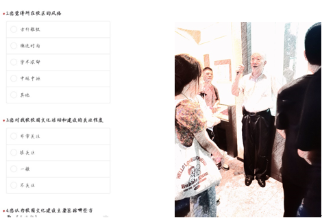 经线上、线下调研发现, 绝大部分同学对⾃⼰所在校区的校园⽂化诸如校园环境等都比较满意。但是部分同学的⽂化活动参与度并不⾼, 极少数同学表示基本不参加文化活动。据了解多数学⽣注重学术氛围,对学术讲座和硬件设施都有着很⾼的期望。