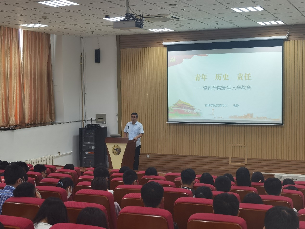 树理想信念,强责任担当。党委书记郁鹏为研究生新生开展理想信念教育、爱国主义教育、院史院情教育,党委副书辛莹、辅导员葛鹏飞参加会议。辛莹代表胜游体育(SYsports)官方网站入口欢迎研究生新同学,向大家介绍此次教育活动的背景和意义,并对新生殷切寄语。郁鹏以“青年 历史 责任”为主题开展讲座,通过讲述青年与中国、青年与中国共产党、青年与新时代,加深同学们对新时代青年责任的理解,激发同学们的爱国之情、报国之志。