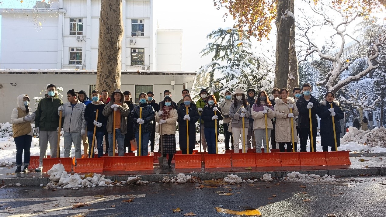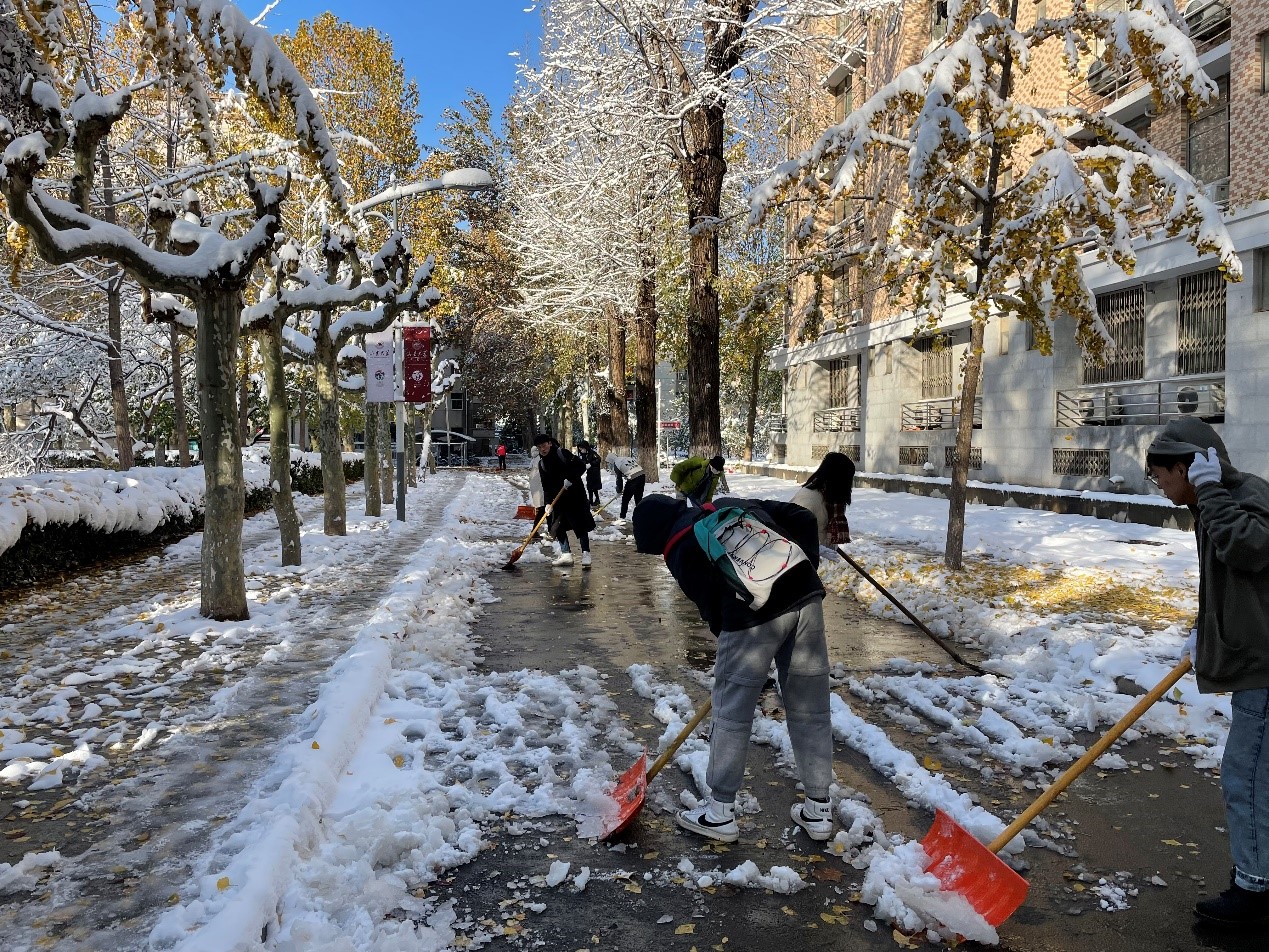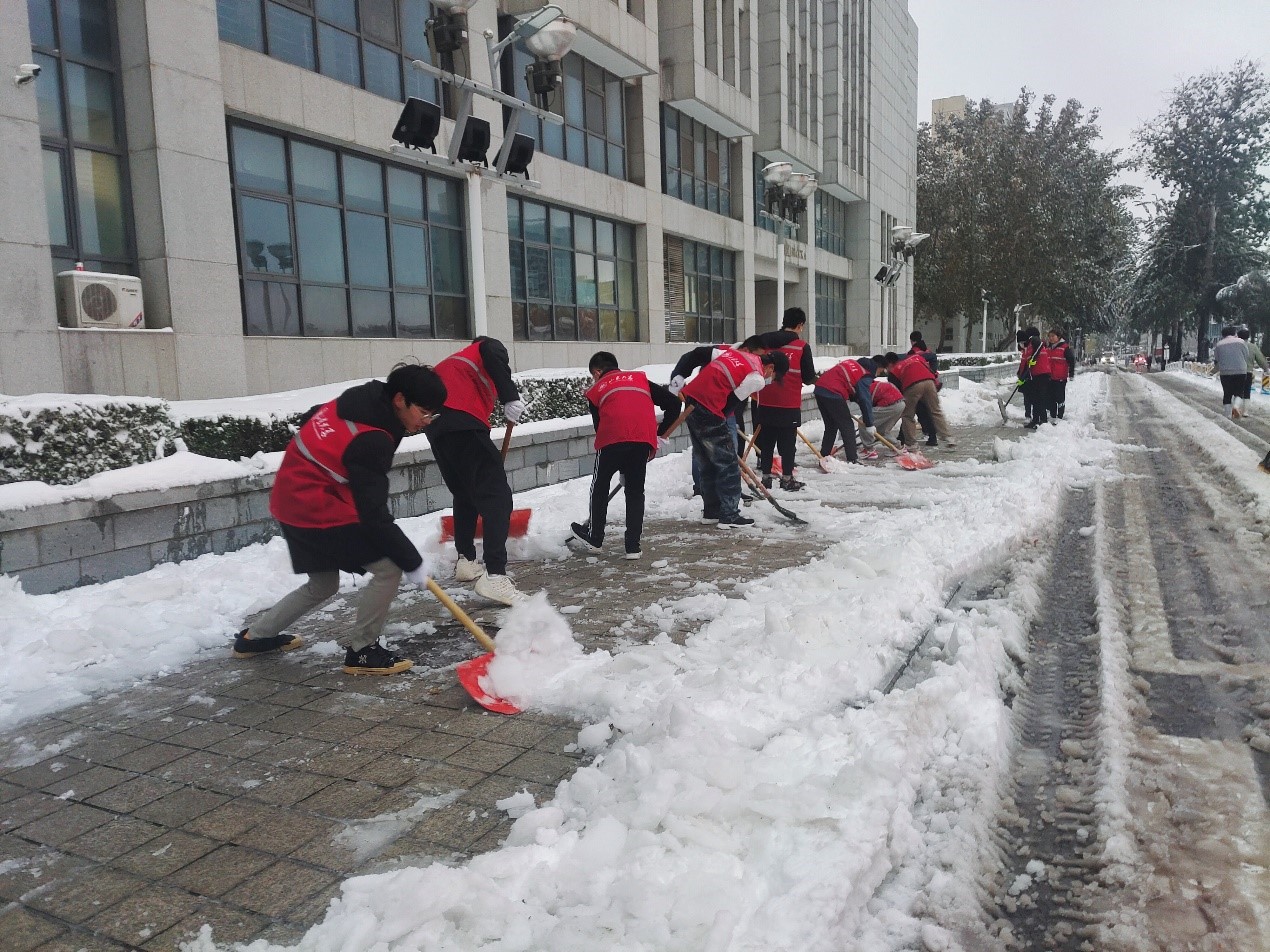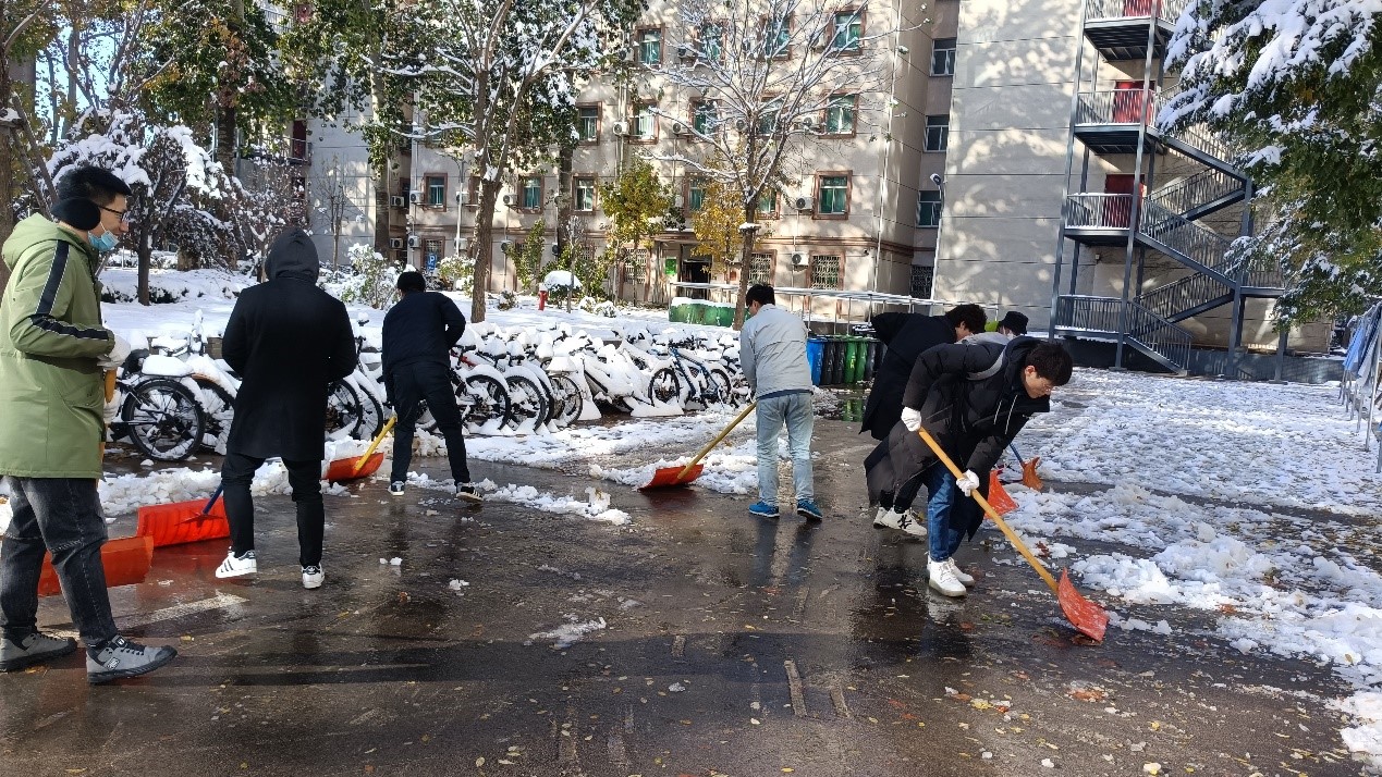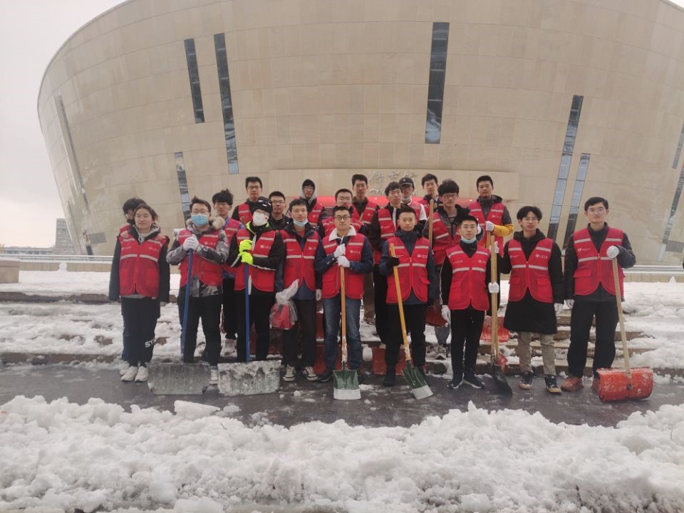 为扎实推进党史学习教育走深走实,胜游体育(SYsports)官方网站入口组织开展形式多样、内容丰富的“我为群众办实事”实践活动,多措并举为师生办实事暖心事,使党史学习教育成果真正惠及群众。11月7日,济南突降暴雪,给在校师生的学习生活带来了不便,存在诸多安全隐患。胜游体育(SYsports)官方网站入口发出“扫雪送温暖,除冰我先行”的倡议,本、研各党团支部、各班级、青年志愿者纷纷报名响应,积极参与到清雪除冰工作当中。在7日、8日两天时间里,大家做好保暖防疫准备,不惧严寒,奋力苦干,使用各样工具清扫积雪,为老师同学出行尽一份力。