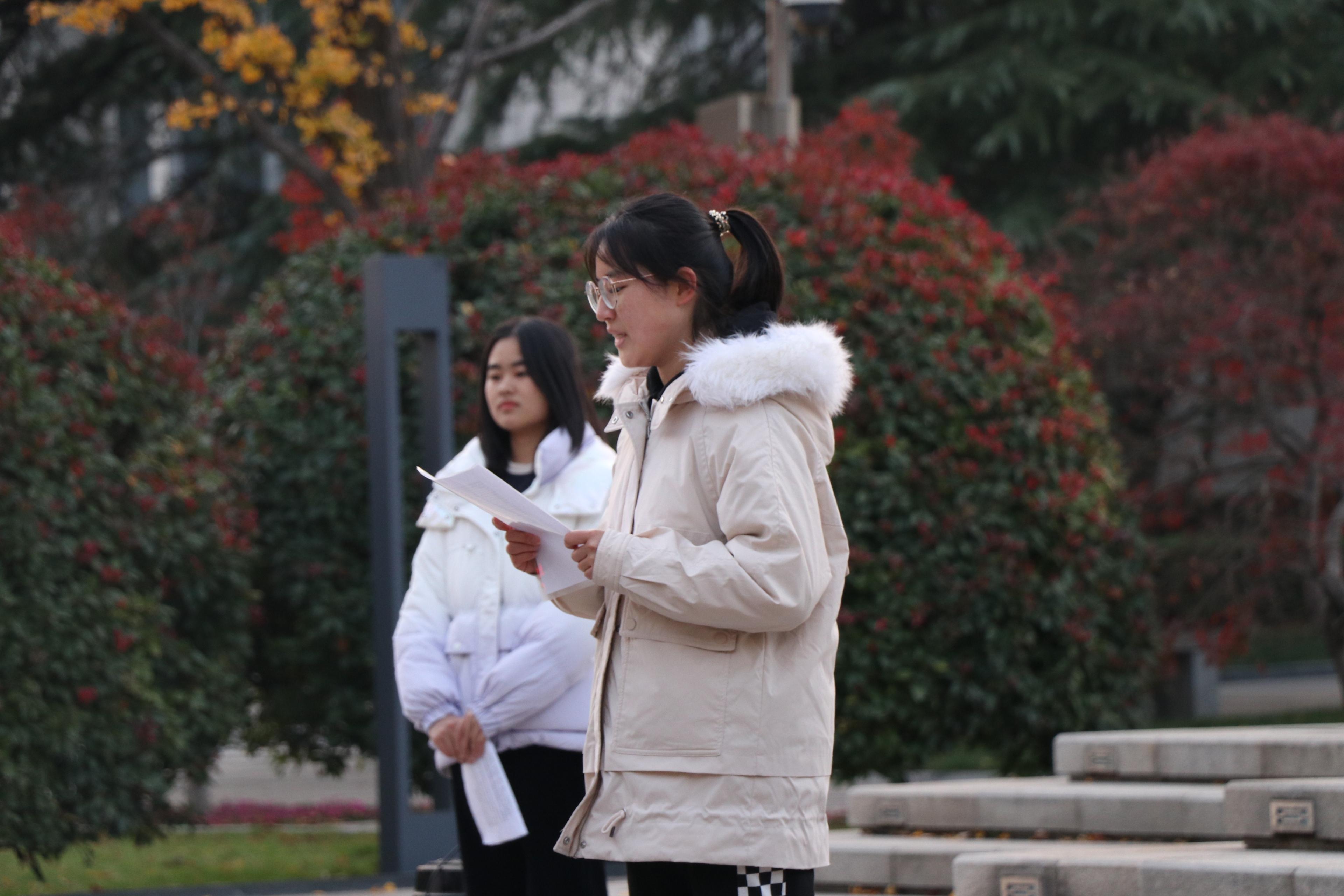 学院2022级优秀团员青年代表应用物理英才班郗方伊同学进行了国旗下讲话,演讲的主题是《永远跟党走,致胜新征程》,她从忆往昔、看今朝、展未来三个视角带领团员同学回顾了党带领中国人民走过的百年光辉历程,她提到,习近平总书记在党的二十大报告中对青年一代寄予殷切期望,“青年强,则国家强。当代中国青年生逢其时,施展才干的舞台无比广阔,实现梦想的前景无比光明。”青年一代应怀抱梦想又脚踏实地,敢想敢为又善作善成,全面学习、把握、贯彻党的二十大精神,让青春在全面建设社会主义现代化国家的火热实践中绽放绚丽之花。