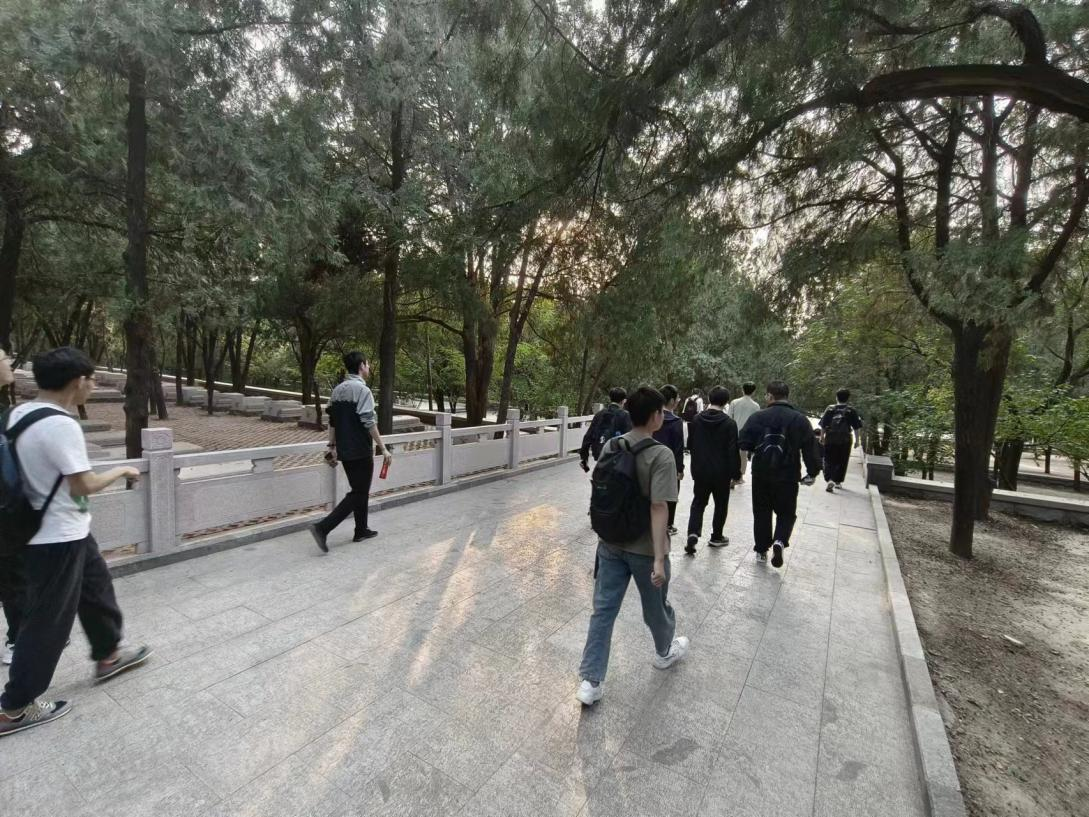 来到济南革命烈士陵园时,太阳已经快要落山了。在陵园中,墓碑上大多是无名,来自全国各地的革命烈士长眠于此。陵园不大,但同学们走得很慢,这条路不长,但是路上的人让同学们心怀敬畏。大家自发地停下来瞻仰感怀,陵园虽没有大型瞻仰的地方,但一座座小小的墓碑,却让到场的同学心中充满了对这片土地的敬仰,对已故之人的敬意。陵园不大,只葬的下少之又少的烈士,陵园不小,世世代代走过的人,我们不会忘记这条路,下一代人同样不会。