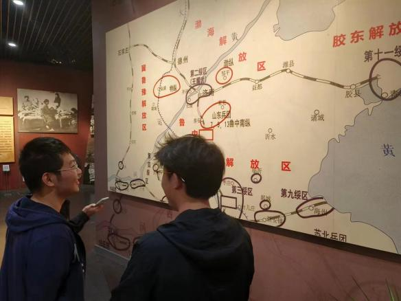 10月29日下午,本团支部所有团员在济南战役纪念馆门口集合,首先参观了济南战役博物馆,在馆中,同学跟随讲解员的步伐,一点点了解大到全国,小到济南的红色革命历程。同学们在“红色基因就是要传承——习近平”的标语前纷纷驻足,虽然这只是短短的一句话,但是却联接了上世纪四五十年代的革命先烈和此时此刻的我们。开展团支部活动的意义不就在于此吗?不忘初心,不忘过去的坎坷岁月,才是我们不断前行的无穷动力。在讲解员讲解完大部分的内容后,同学们解散自行参观自己感兴趣的内容。其中大部分同学更多兴趣着重于武器的展示上,部分同学围在地图旁边,以自己的历史记忆,重现当时的战况。