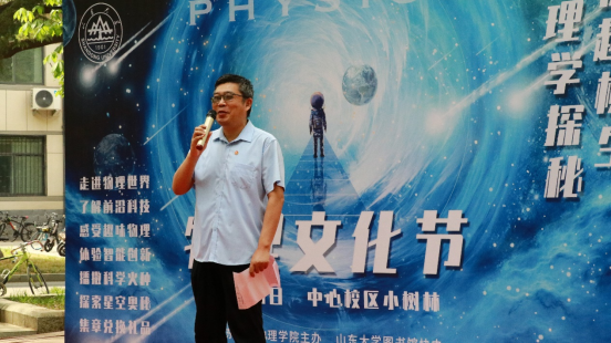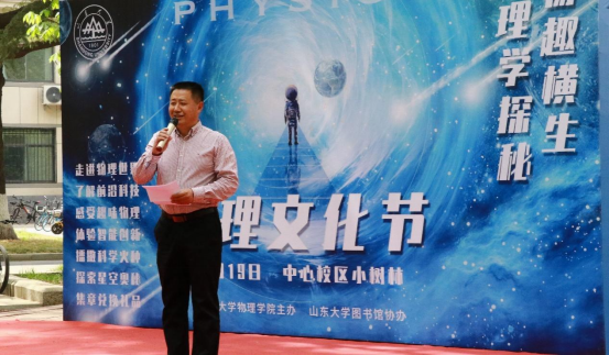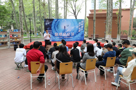 为贯彻落实学校“学在山大,快乐成长”教育理念,激发广大学子对物理学科的兴趣,4月19日,物理学院“物趣横生·理学探秘” 首届物理文化节在中心小区小树林成功举办。研究生院副院长、党委研究生工作部副部长高弟,图书馆副馆长程川生,团委副书记郑柔澄,胜游体育(SYsports)官方网站入口党委书记郁鹏,胜游体育(SYsports)官方网站入口副院长秦伟出席活动启动仪式。本次活动由胜游体育(SYsports)官方网站入口党委副书记辛莹主持。在文化节举办的office hour中,胜游体育(SYsports)官方网站入口副院长柏利慧向同学们进行读书经验分享。