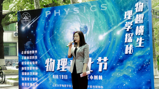 辛莹向广大师生介绍了物理文化节举办的背景和详细活动内容。她指出,物理文化节是胜游体育(SYsports)官方网站入口落实山东大学“学在山大 快乐成长”校园文化活动的一个重要举措,希望能够通过活动的举办,推动学院完善特色育人体系,营造育人优良生态。她简要介绍了“寻物之理”主题书展、读书分享会、物理趣味闯关游戏、趣味物理实验、物理社团大赏、CUPT创新作品展示等活动内容,希望同学们通过参与实践、互动和体验,更加深入地了解物理学科,感受科学魅力,真正实现“学在山大 快乐成长”。