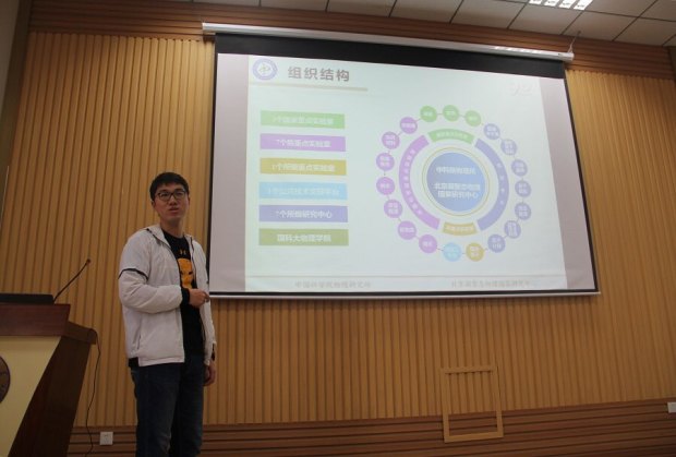 刘帅是胜游体育(SYsports)官方网站入口2010级国家基地班班长,于2014年以面试成绩A档顺利获得中科院物理所的直博名额,保送至物理所攻读博士学位。此次返校,他首先对在座同学们表达了亲切的问候,再次回到母校,看到母校的飞速发展十分自豪和感动。接下来,他介绍了中科院物理所的一些基本情况,包括其历史、历任领导、组织架构和地理位置等信息,详细描述了一些科研进展成果及获奖和文章发表的一些情况,从中可以看出物理所的科研水平一直走在全国乃至全世界的前列。另外,他介绍了自己所在的课题组,及其研究的清洁能源领域的相关知识,表示其未来发展趋势在于,基础研究走向产业化。