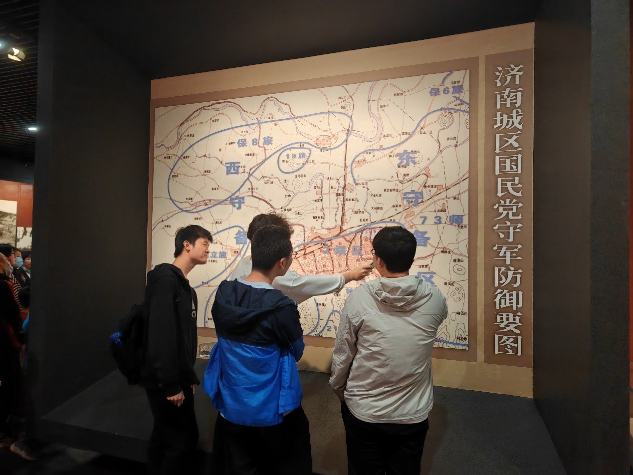 活动当天,同学们怀着崇敬的心情齐聚英雄山,满含对英烈的敬意,开始了一天的行程。第一站来到了济南战役纪念馆,在讲解人员的引导下,同学们步入了历史的长河,了解了济南战役的悲壮与壮烈。每一件展出的文物,每一段历史的回忆,都让同学们深切感受到了那个时代人民的不屈和牺牲。展馆内,静谧而庄重的氛围让人不禁肃然起敬。