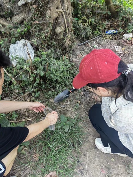在一队队员们如火如荼开展采样工作的同时,二队队员也不甘示弱,队长白金带领队员王筱雅、李皓博沿青衣江向上游考察,对上游水样和土样进行采集。在考察途中,队员们发现了众多污染物,不禁感叹环境保护工作的任重道远。当天下午,二队成员们乘坐公共汽车前往雅安集团机械厂,对工厂附近的小溪进行考察,观察小溪附近生物多样性情况,并将观察情况记录在册,与上午的考察情况进行对比,从而初步确认当地的污染情况。